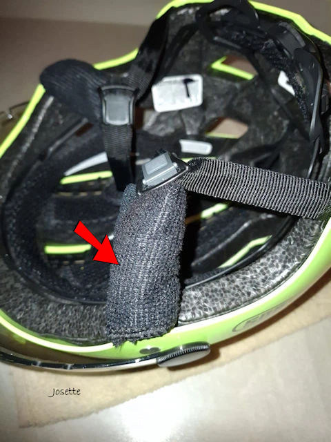 Bij ons vorige verblijf had ik een lichtgevend bandje met plakband aan een kant gedaan en wonderwel dat hielp. Dus nu ben ik aan het naaien gegaan, een zwarte fleecedoek gekocht allez 3 stuks € 0.89 maar had er maar eentje nodig, en op maat gemaakt, mooi plat gestikt, en rond het bandje bevestigd. Ook voor Douglas dan heeft hij ook minder ruis met zijn hoorapparaten! Op hoop van zegen.