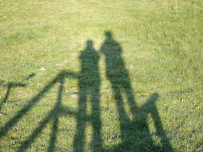 Er wordt niet de fiets op gegaan. Hij ziet het niet zitten. Dan maar naar de winkel want morgen is het D- Day voor ons regen en 7 BFT. We zijn na de boodschappen naar de parking aan het strand gereden, je moest daarna een ferme klim doen, verder ben ik niet gegaan, tot aan de zee dat was te ver moet je ook nog terug hé. Deze foto's zijn van boven op de duin gemaakt als je goed kijkt zie je mijn schaduw.